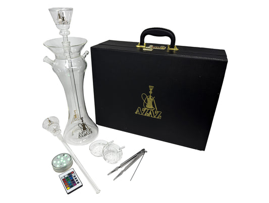 AZAZ Cosmic Breeze Luxury Tall Portable Glass Hookah Set with 2 Glass Bowl - Glass Downstem, 2 Glass Bowl Lid, LED Light with Remote, Charcoal Tongs, 2 Disposable Hookah Hose, and Hookah Carrying CaseRegular price $129.99 USDRegular priceUnit price / per$149.99 USDSale price $129.99 USDSale